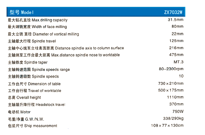 西湖铣钻床ZX7032W